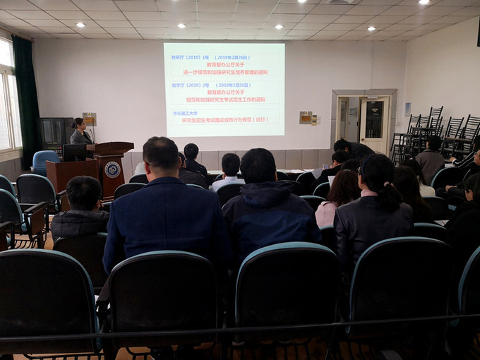 为深入学习贯彻全国教育大会精神,进一步规范和加强研究生招生、培养和管理各个环节,提升研究生培养质量,3月21日中午,开云官方网页版官网在学校实验十楼三楼会议室召开2019年度硕士研究生复试工作培训暨全体研究生导师会议。学院党委书记项延训、副书记杨倩、全体导师及参加2019年研究生复试的工作人员参加会议。会议由学院副院长章兰珠主持。