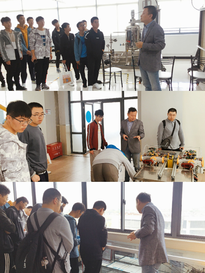 10月22日,学院组织新生参观了位于实验一楼的机械实验教学中心和创新实践基地。学院实验教学中心主任、创新实践基地负责人吴清就基地下设的各个兴趣小组、常规的活动项目和比赛项目、之前获得的成果和奖项等作了全面的介绍,帮助新生了解了创新活动是如何开展的,应该培养哪些方面的能力。此外,同学们还观看了学院教学型啤酒生产线,对机械专业有了更加直观的认识。