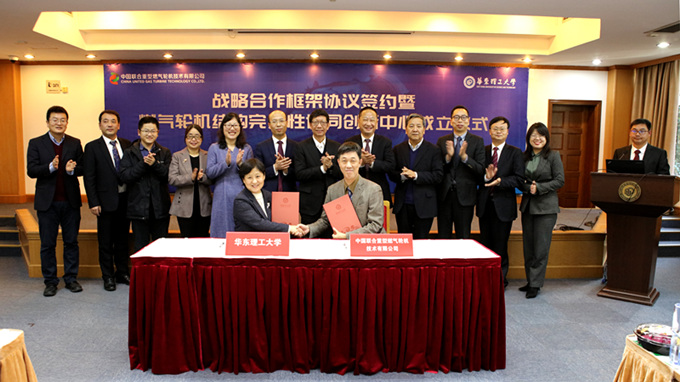 日前,我校与中国联合重型燃气轮机技术有限公司(以下简称“中国重燃”)在徐汇校区逸夫楼演讲厅签署了战略合作框架协议。我校校长轩福贞、副校长王慧锋,中国工程院院士涂善东,机动学院党委书记杨强、院长张显程,国家电投总经理助理兼中国重燃董事长、党委书记束国刚,中国重燃副总经理张小毅、总设计师顾春伟、副总经理余春华、技术副总监熊健等出席相关活动。仪式由我校科研院副院长贾云飞主持。