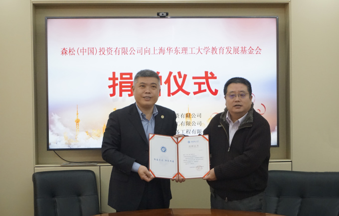 李涛介绍了华理近年来各项事业发展情况,对森松长期以来对华理教育事业的支持表示感谢。李涛代表校基金会向森松集团授予了捐赠证书。森松集团曾先后在我校捐赠设立奖教金、奖学金等。2020年,森松集团将原本用于公司周年庆典的50万元人民币捐赠给华理用于新冠疫情防控工作。