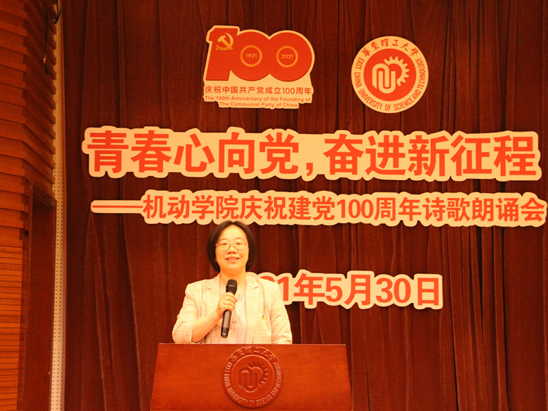 杨倩首先致辞。她指出,我们党百年的奋斗历程,是推动中华民族由危亡走向复兴、带领中国人民由苦难走向幸福的伟大历史征程。她希望同学们要树立坚定的理想信念,适应时代发展的潮流,努力锤炼自己的综合素质和能力,勇担历史使命,将自己培养为可担时代重任的新时代有为青年,不辜负党和国家的期望,以优异成绩向中国共产党的百年华诞献礼。