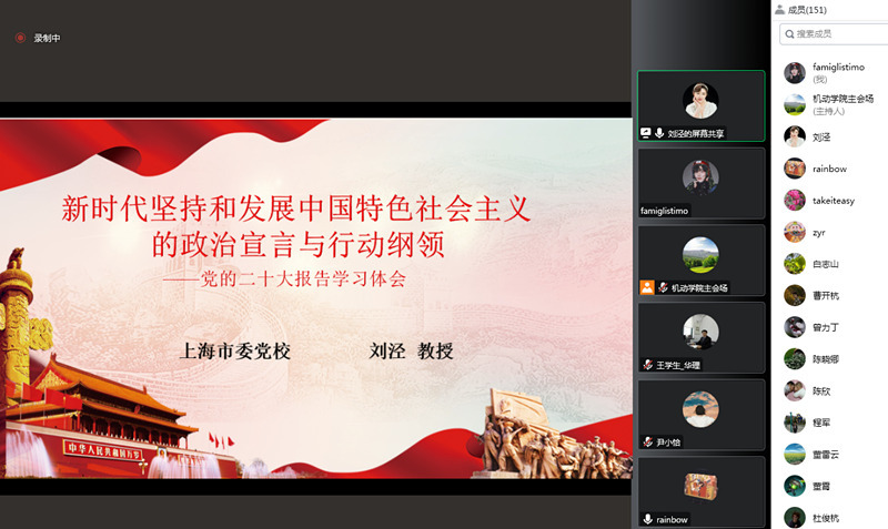 为深入学习宣传贯彻落实党的二十大精神,10月25日下午,机动学院邀请中共上海市委党校科社教研部刘泾教授,作题为“新时代坚持和发展中国特色社会主义的政治宣言与行动纲领——党的二十大报告学习体会”的辅导报告。学院党政领导班子成员在线下参会,其他教职工通过腾讯会议参加学习。报告会由学院党委副书记李锦主持。