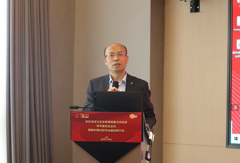校长轩福贞出席研讨会并致辞。他表示,在党的二十大胜利召开后举办本次研讨会,对于专业建设具有重要意义。他回顾了过程装备与控制工程专业的成长发展历程,华东理工大学作为这一专业的创办院校之一,70年来为国家和行业培养了一大批学术大师、大国工匠和卓越工程师,在我国化工、炼化、能源、冶金、重大装备制造等流程工业领域的建设中发挥了重要作用。近年来,随着工业数字化转型升级,人工智能、工业物联网、大数据等新技术的飞速发展,过程装备与控制工程专业建设面临新的挑战和机遇。他希望通过本次会议的研讨和智慧碰撞,能够为推进专业的转型升级和国家卓越工程人才培养提供新的智慧方案和模式路径。