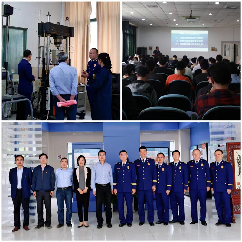 双方与会人员围绕实验室安全中的防火防爆、消防安全、特种设备安全等进行了座谈。机动学院青年教师们结合自身研究方向就火灾监控、烟气扩散模拟、消防设施改进等与上海市化学工业区消防救援支队进行了深入交流。陈柏江作为机动学院安全工程(安全检测技术)专业毕业的校友,对母校严谨的校风和优良的办学传统记忆犹新,他分享了自己在上海市化学工业区消防救援支队的从业经历,并由衷地感谢母校的培养。座谈会后,夏增升、孙飞深入学院实验室进行指导工作,实地查看了实验操作场所安全管理情况,重点对安全疏散、用火用电、消防设施以及实验环节可能存在的爆炸起火风险点进行了检查和指导。