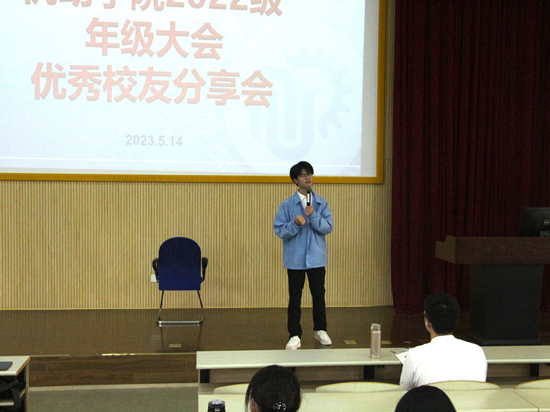 为进一步加强学生全过程职业生涯规划指导工作,深化“三全育人”工作机制, 5月14日,机动学院在奉贤校区A200教室召开2022级年级大会暨优秀校友分享会。会议邀请我院优秀本科毕业生郑浩南和蔡炜春作经验交流。机动学院2022级辅导员王玉琳、王志文以及学院2022级全体本科生参加活动。