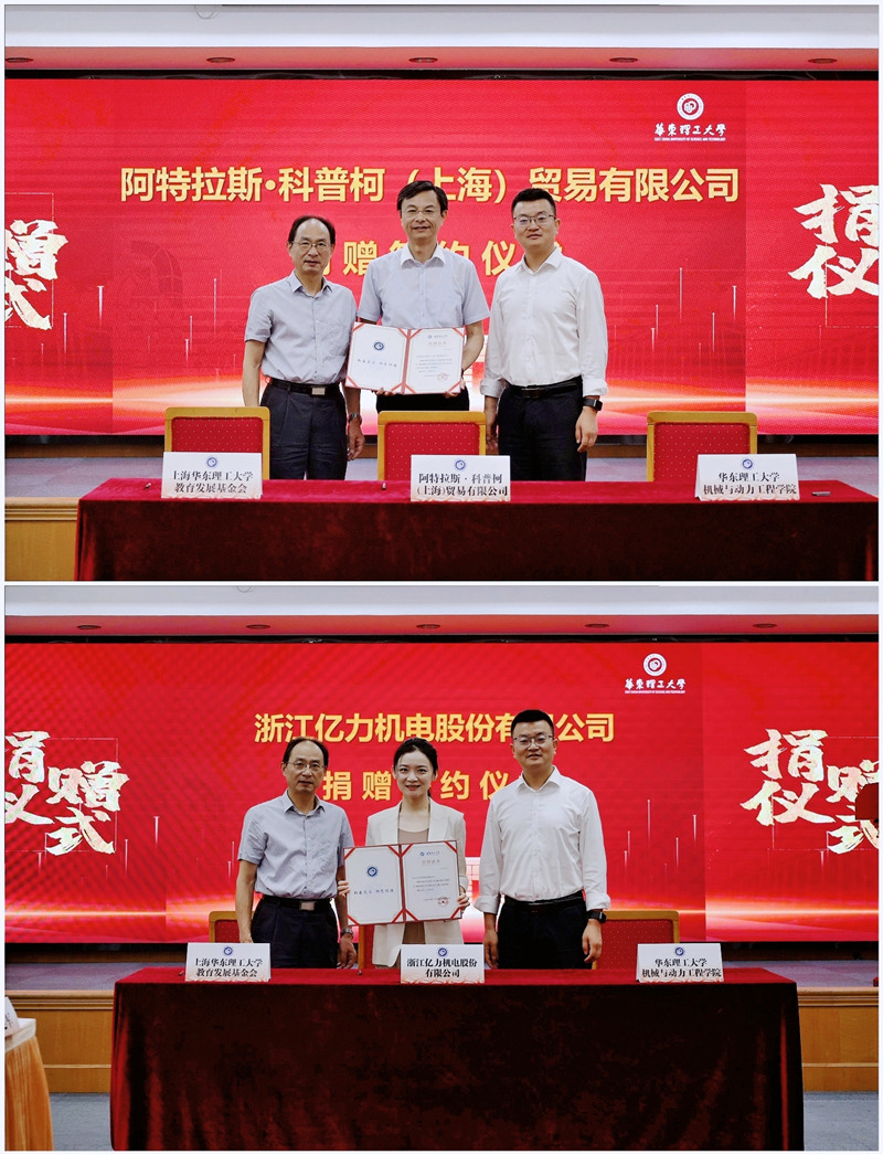 9月6日,开云官方网页版官网在我校徐汇校区逸夫楼演讲厅举行集体捐赠签约仪式。阿特拉斯·科普柯(上海)贸易有限公司总经理刘宇镝,浙江亿力机电股份有限公司人力资源总监黄佳倩,华东理工大学校友与发展联络处处长、上海华东理工大学教育发展基金会秘书长李建伟,开云官方网页版官网党委书记杨强出席活动。捐赠仪式由开云官方网页版官网副院长易建军主持。