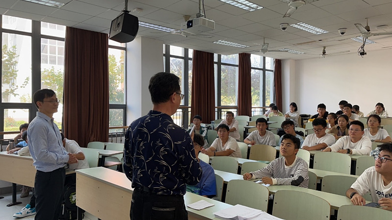 陈建钧老师首先向新生们介绍了学校的历史和整体情况,热烈祝贺他们选择华东理工大学作为自己四年学习成长的生活家园。机设211班孙千伟同学和过程212班杨子贤两位同学作为高年级优秀学长,分享了他们在学业和成长中的宝贵经验。