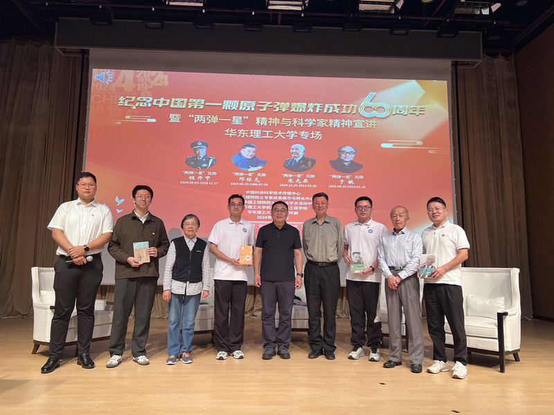 沈海涛对莅临本次宣讲会的各位嘉宾表示热烈欢迎,向以“两弹一星”元勋为代表的为新中国科技事业作出卓越贡献的科学家们表示崇高的敬意和深情缅怀。他指出,六十载风雨兼程,“两弹一星”精神如同璀璨星辰,照亮了中华民族伟大复兴的征途。华东理工大学自建校以来,一大批优秀毕业生加入核工业建设,开创了分离铀、钍和稀土元素的新途径,为我国核事业的发展作出了贡献。在“两弹一星”精神和教育家精神的指引下,华理师生将共同谱写全面建设社会主义现代化国家、全面推进中华民族伟大复兴的华理新篇章!