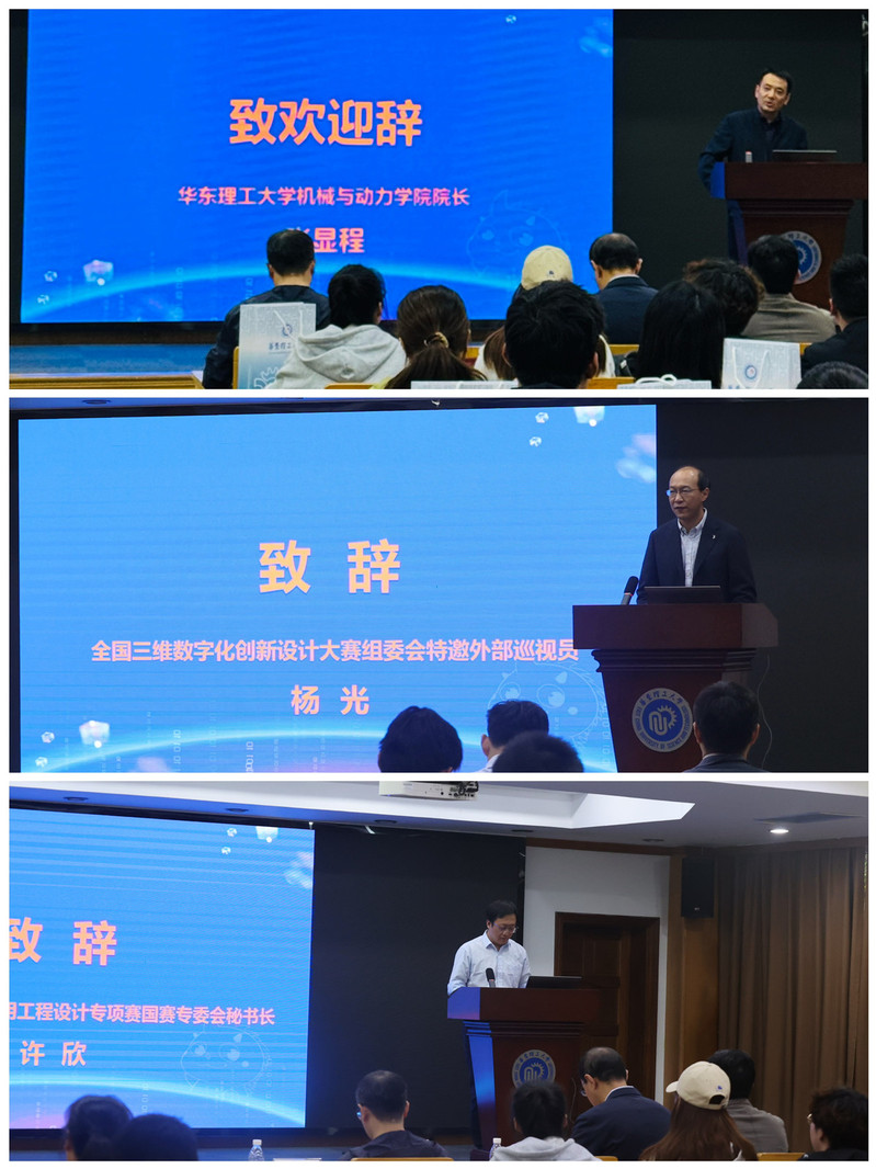 开幕式上,张显程代表学校对全国三维数字化创新设计大赛组委会特邀外部巡视员、北京云道公司参会领导、参赛院校的指导老师以及参赛学生表示热烈欢迎,并鼓励参赛队伍赛出水平、赛出风格、赛出佳绩。杨光致辞并感谢华东理工大学对比赛的大力支持。许欣代表云道公司致辞并鼓励参赛学生应用国产软件进行仿真分析。为了加强学生对基础学科理论知识的掌握与实践运用,今年3D大赛新增了CAE仿真应用工程设计专项赛,旨在培养具备分析问题及应用CAE仿真技术解决实际工程问题能力的高素质复合型技术技能人才,为发展新质生产力提供有力支持。经过前期各个赛区的启动及大力宣传动员,来自24个省份的158所高校参与,其中,985/211院校34所,一般本科院校124所,报名队伍数量总计716支队伍。